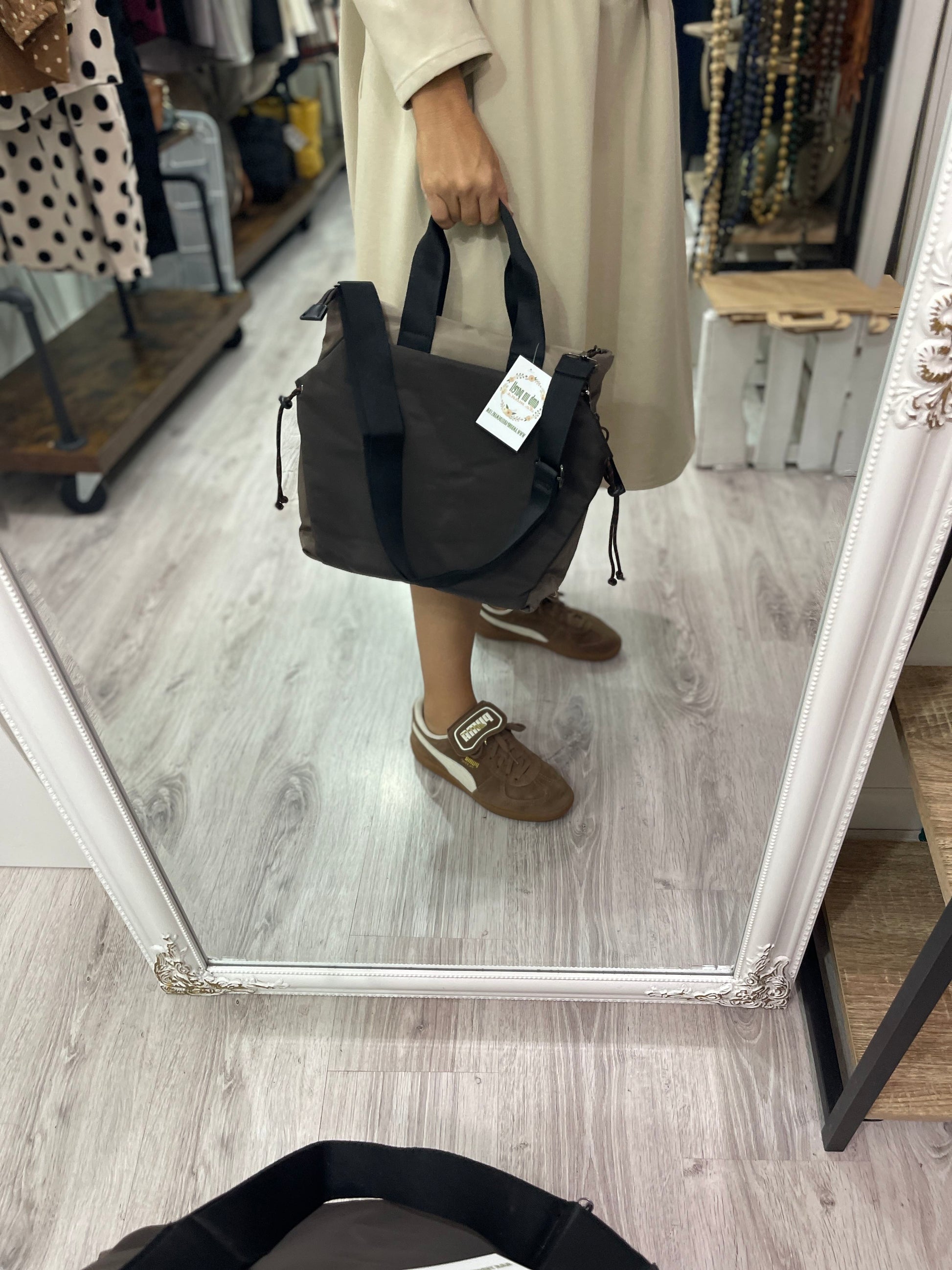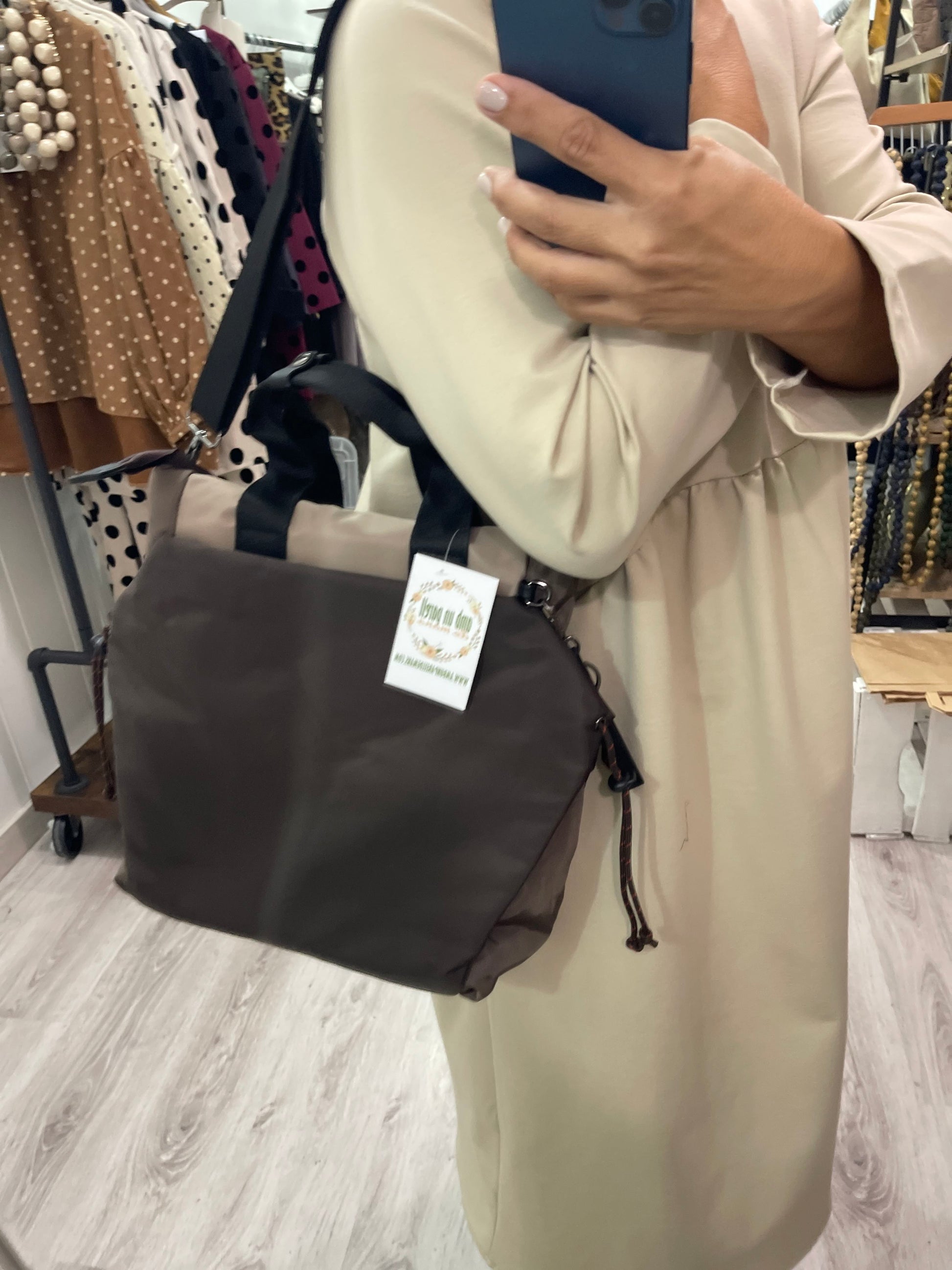 Bolso 3 en 1 chocolate : de mano-mochila-bandolera