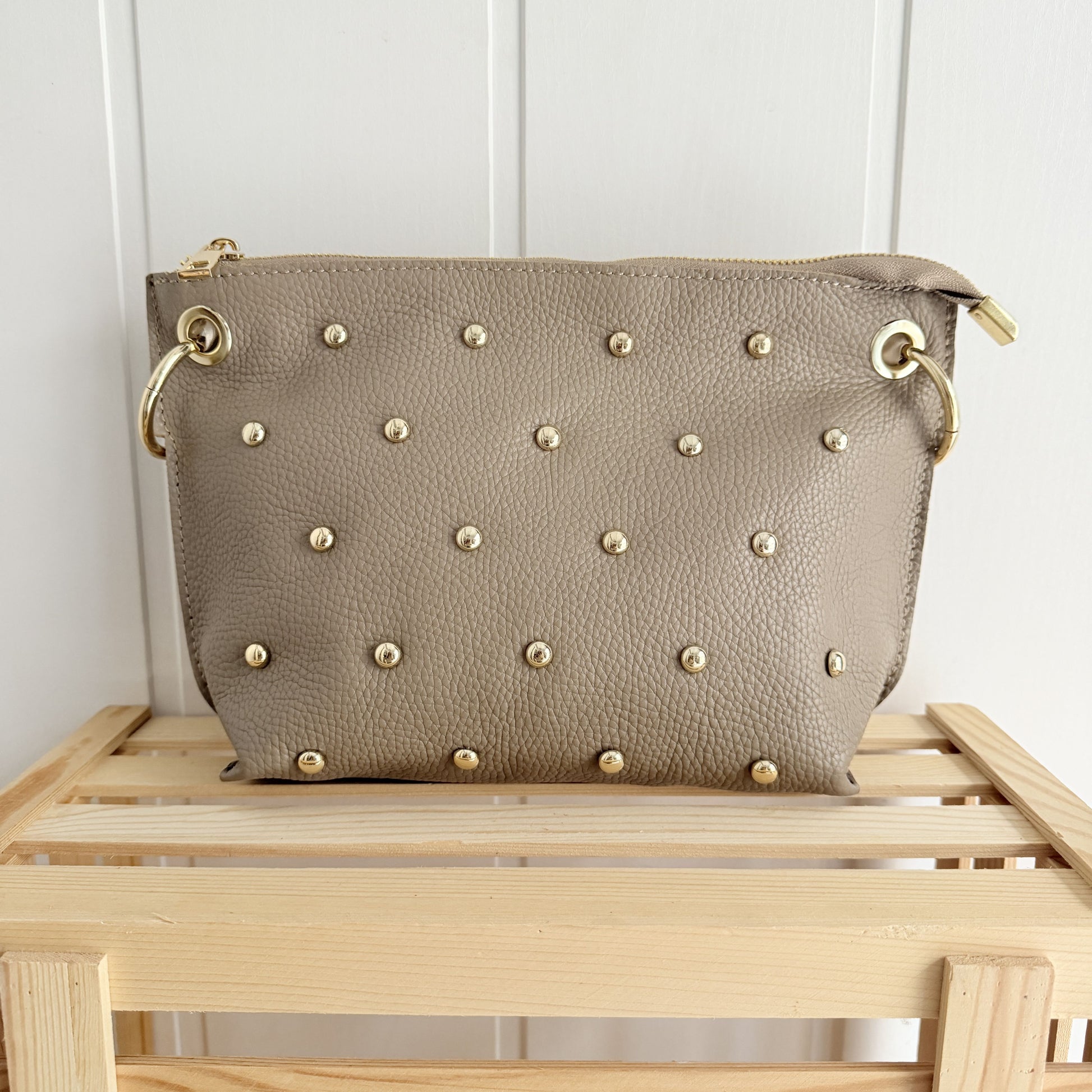 Bolso Piel Bandolera Tachitas taupe