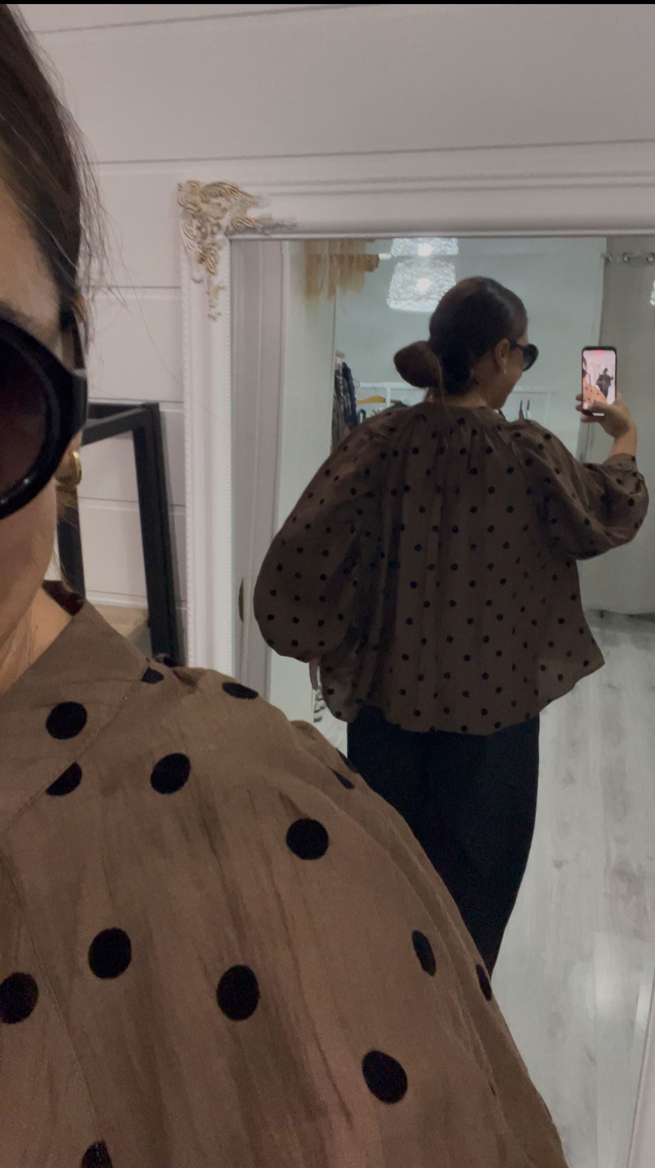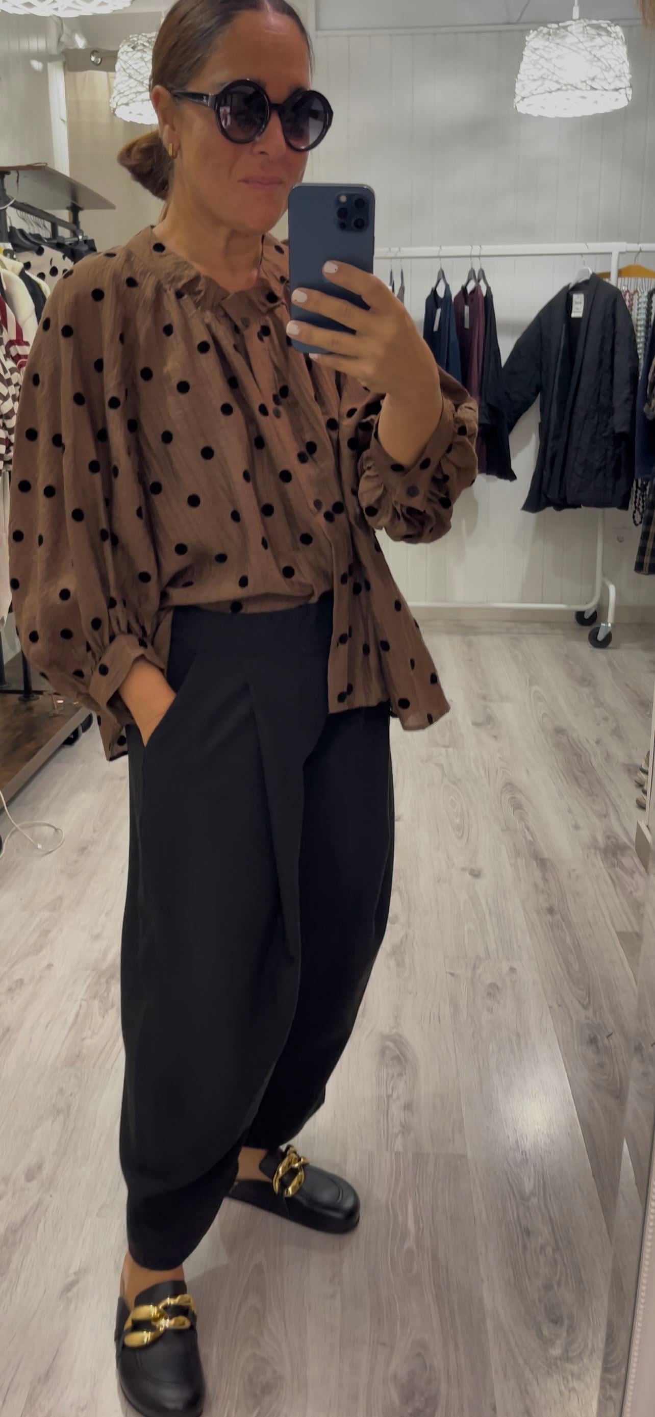 Evasée, ligeramente oversize, con topos en terciopelo