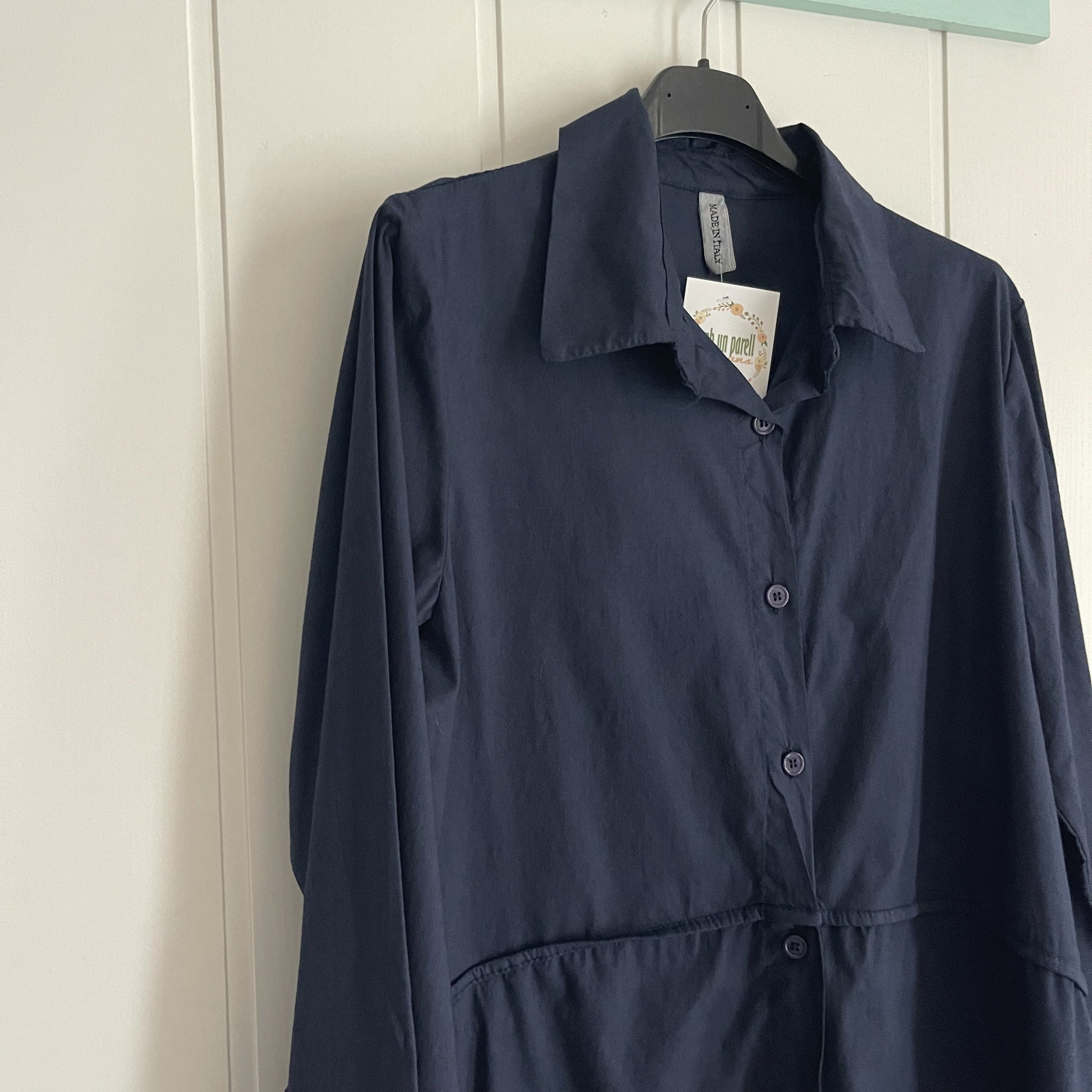 Cuello camisa, abotonada delante, manga larga, y con detalle de pespunte en el frente y atrás.