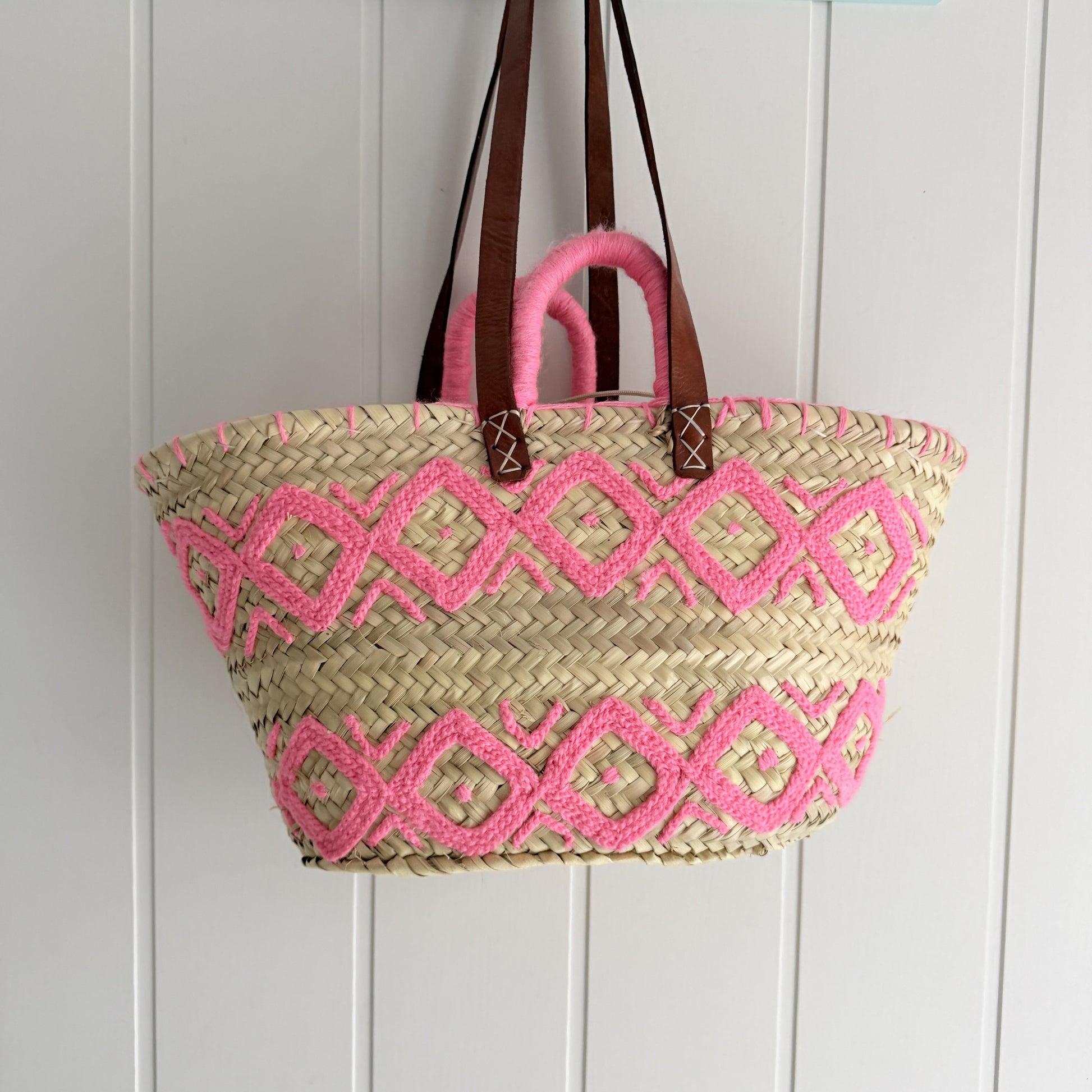 Doble asa de esparto corta y doble asa larga de piel.