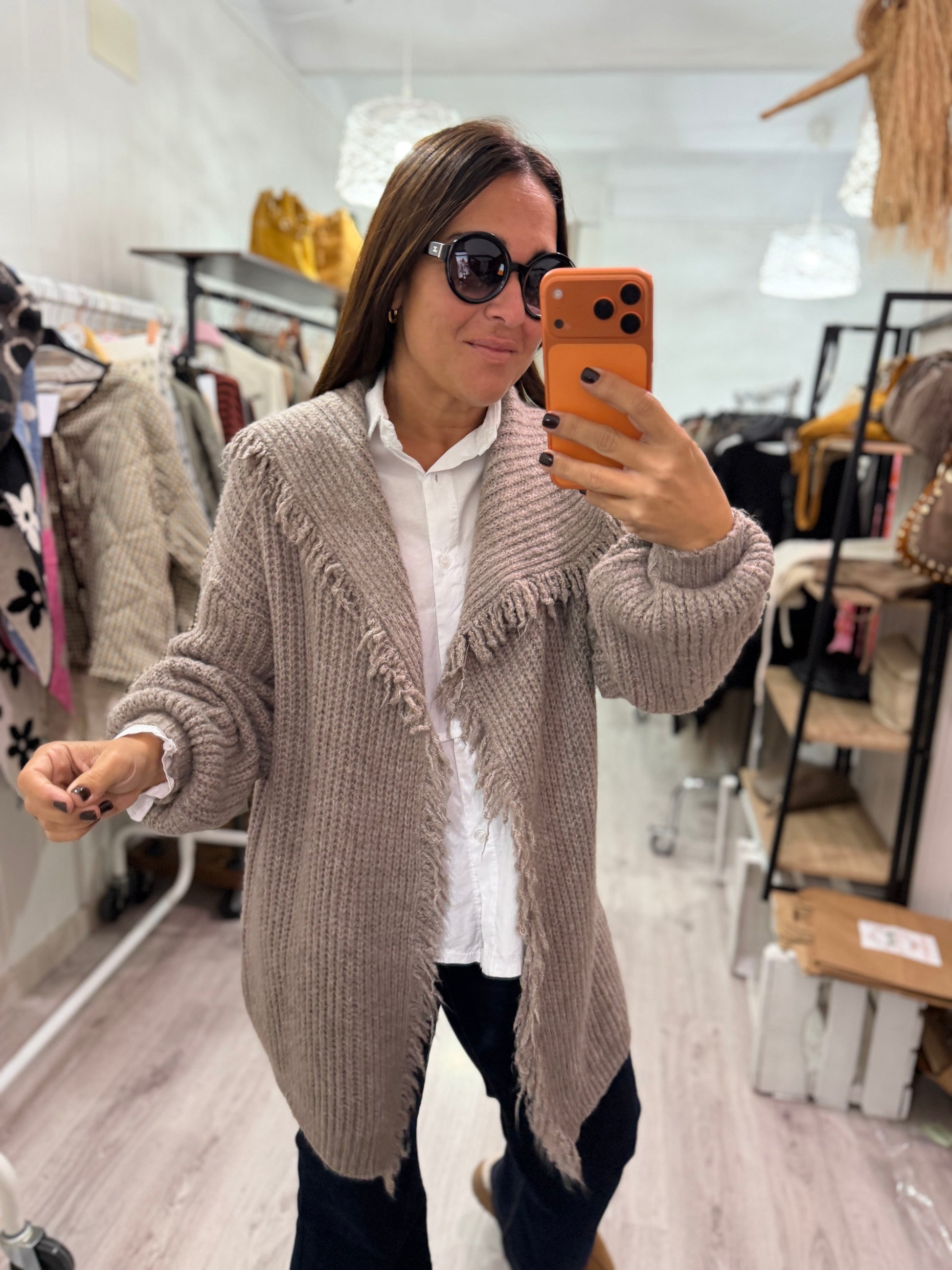 Chaqueta Flecos taupe