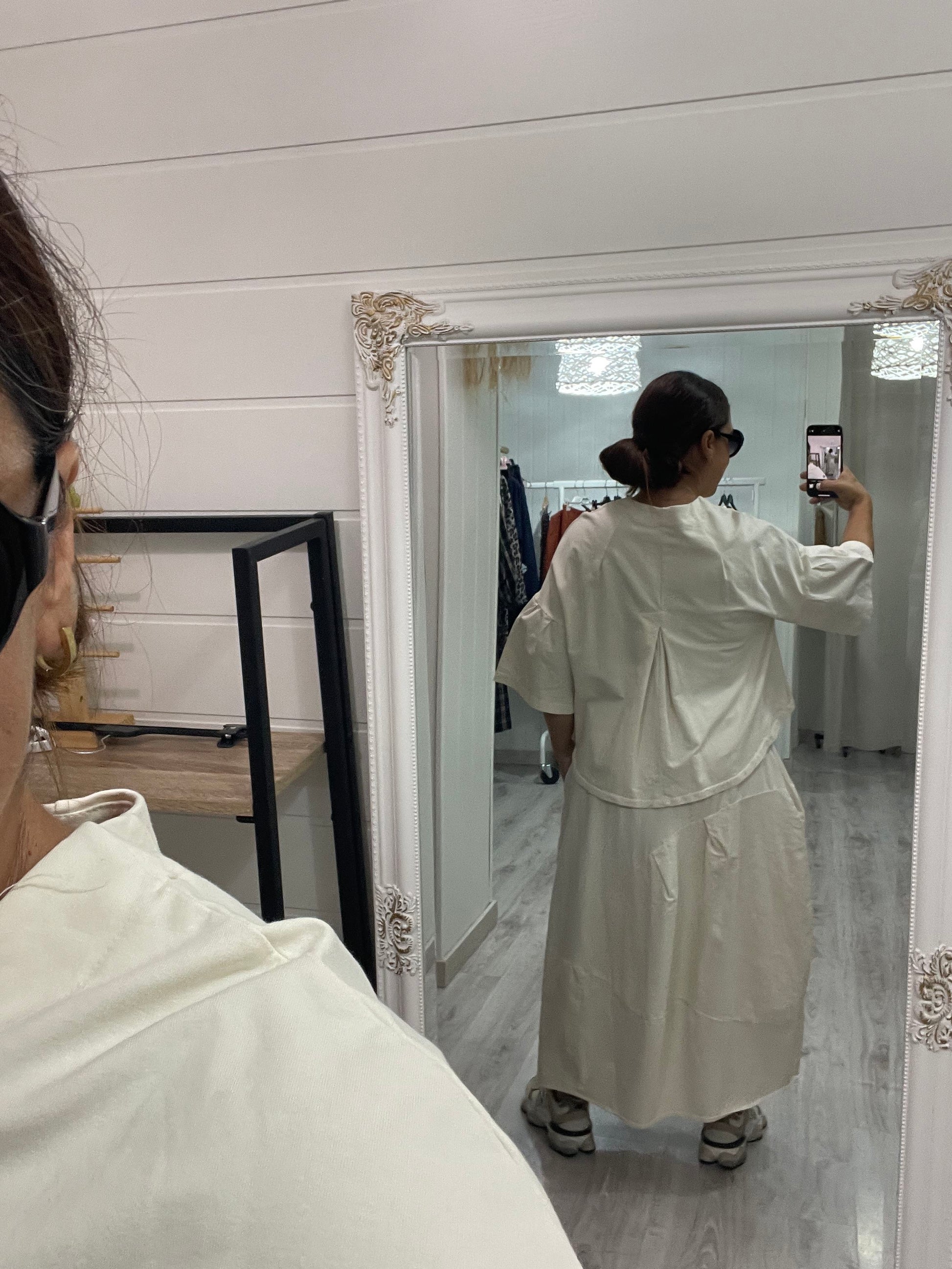 Combínala con la Falda Fuji, el Pantalón Nara Natural y el pantalón Saoko, ya que coincide el color y el tejido para poder hacer conjunto.