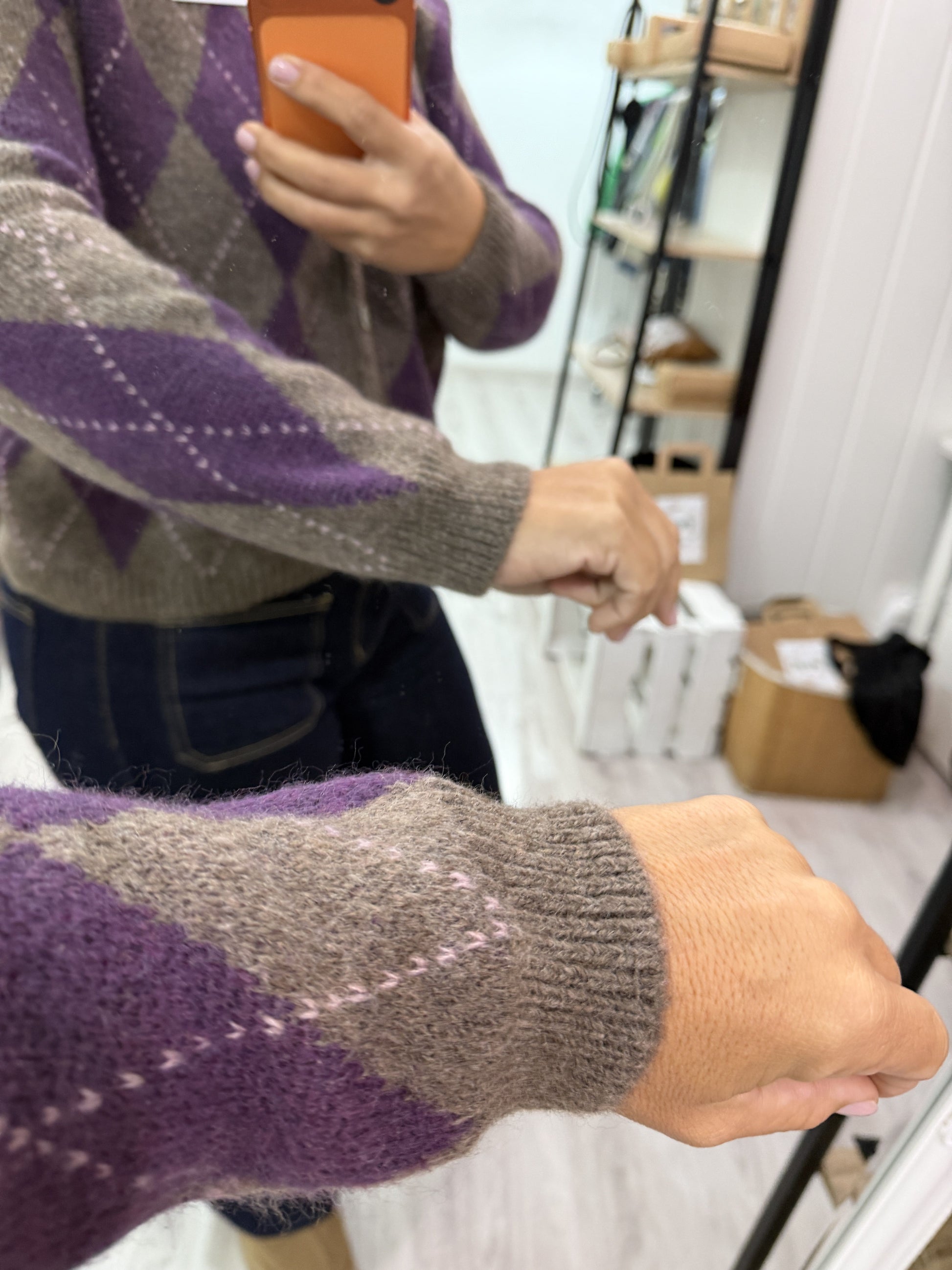Chaqueta Kate rombos lila y taupe