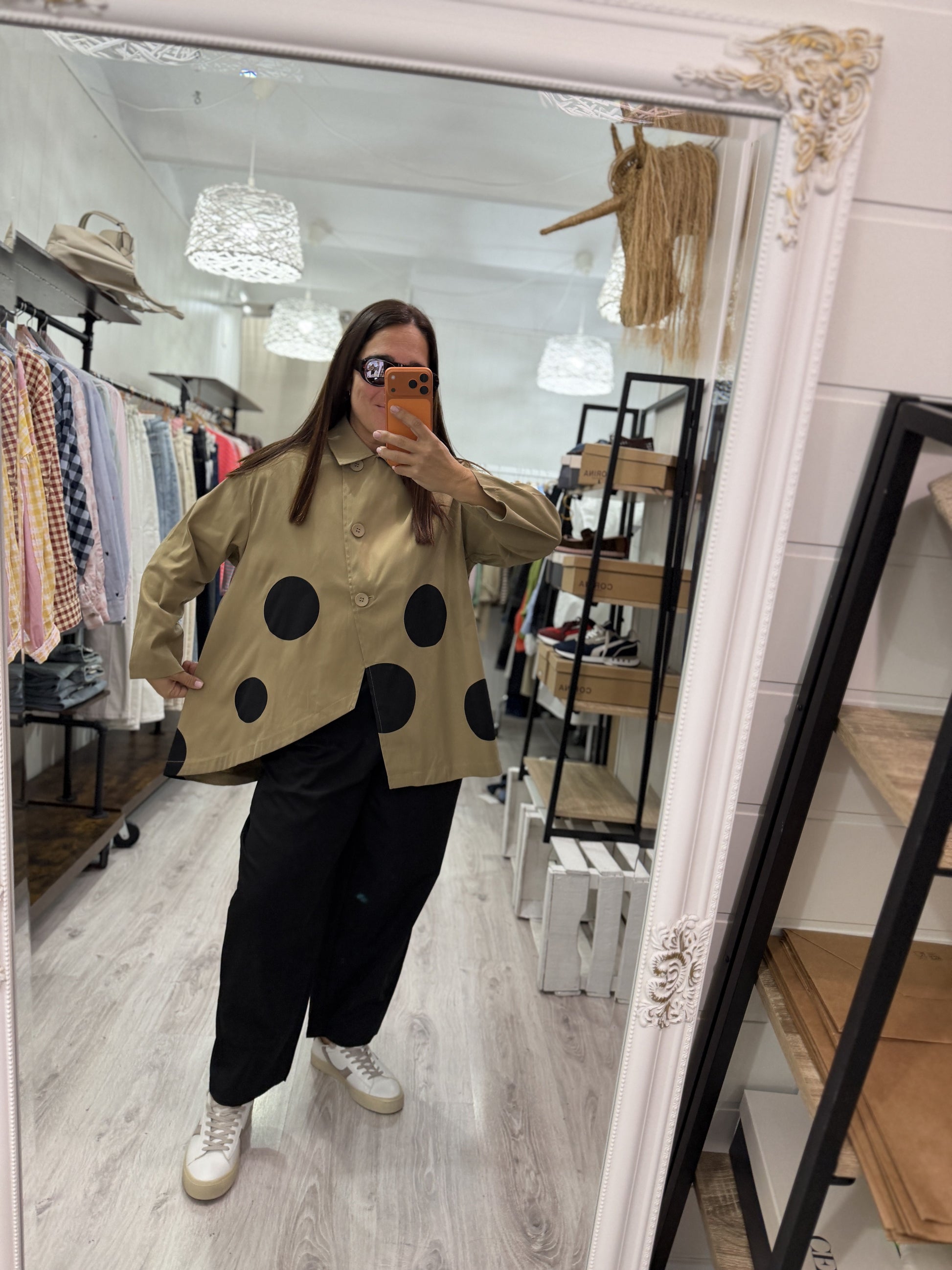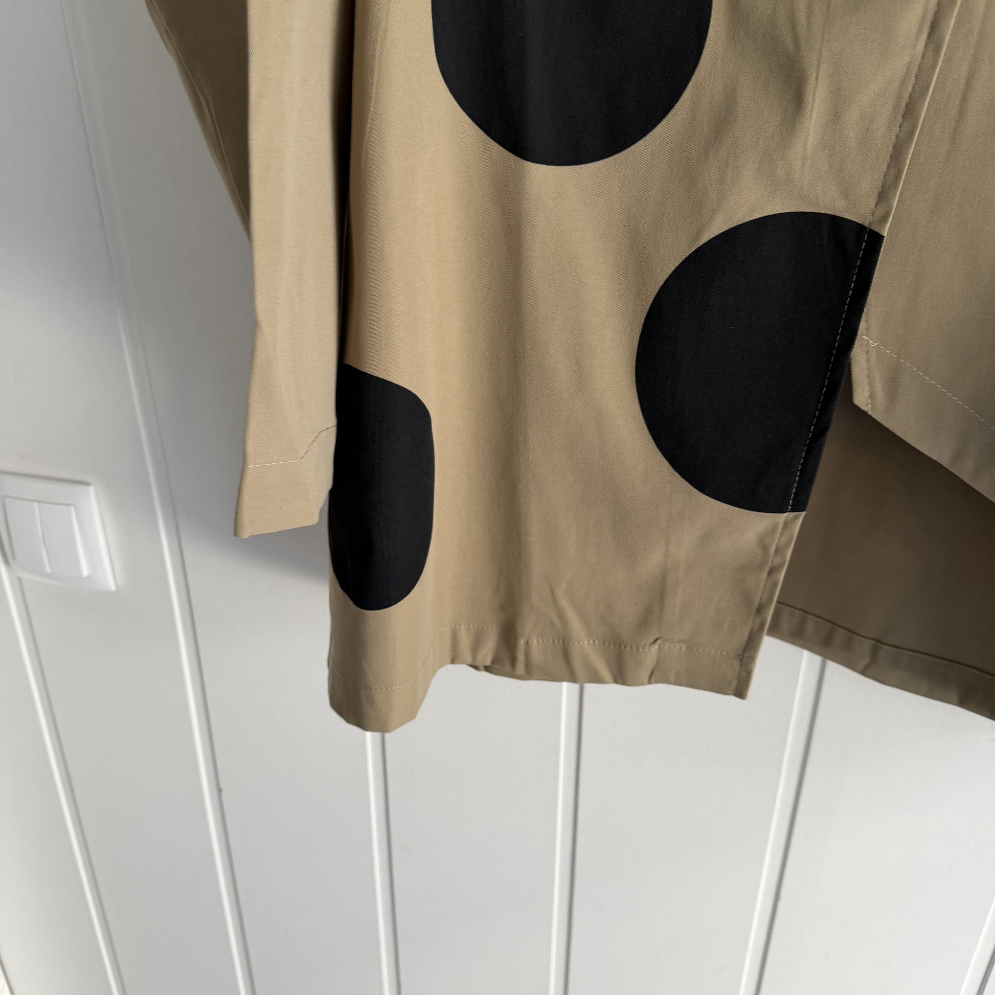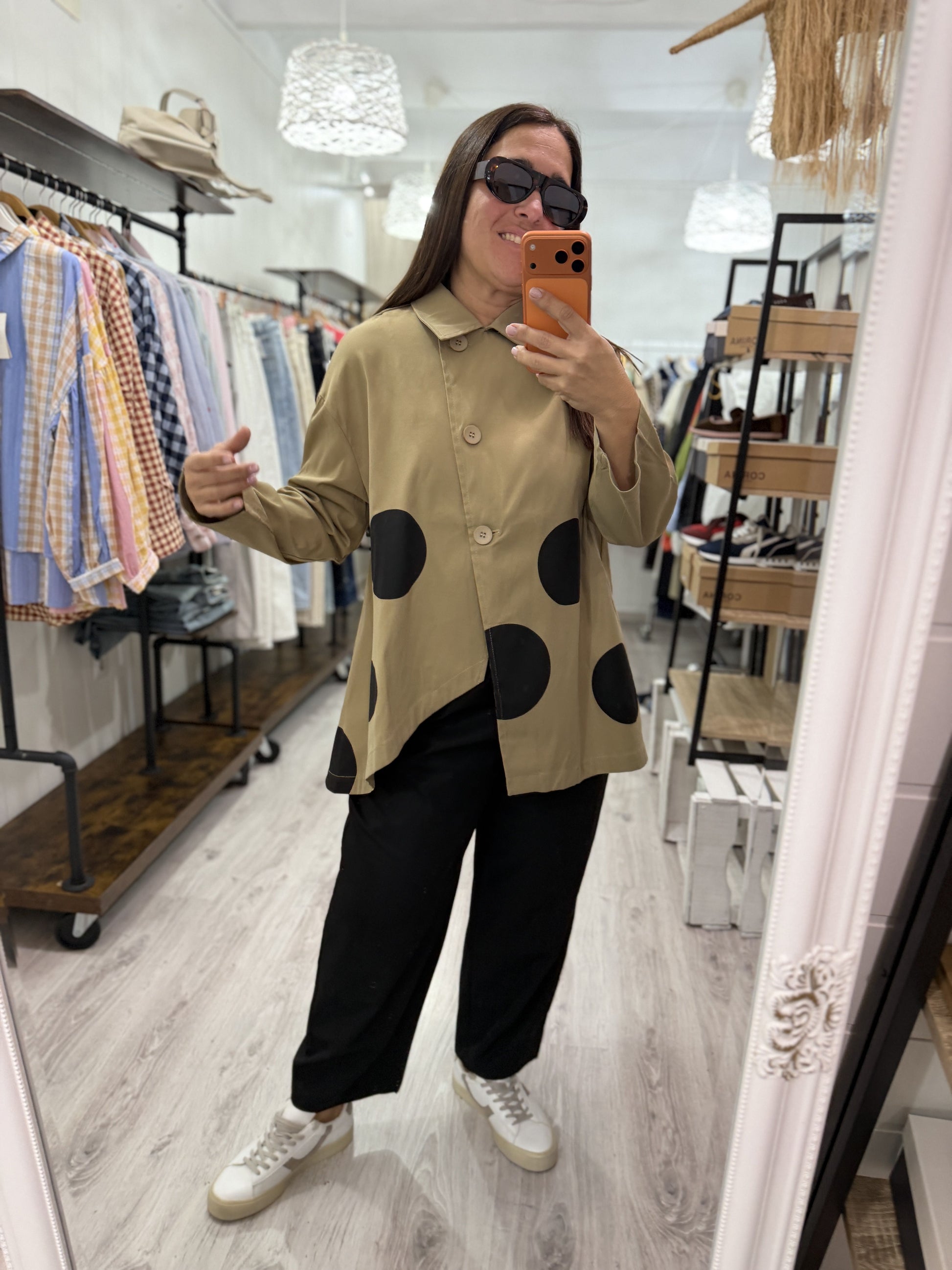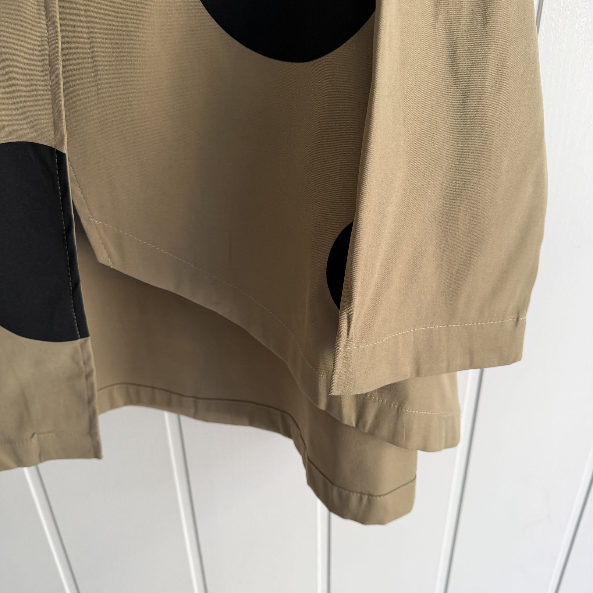 Bajo irregular, asimétrica, manga larga y con topos a contraste.
