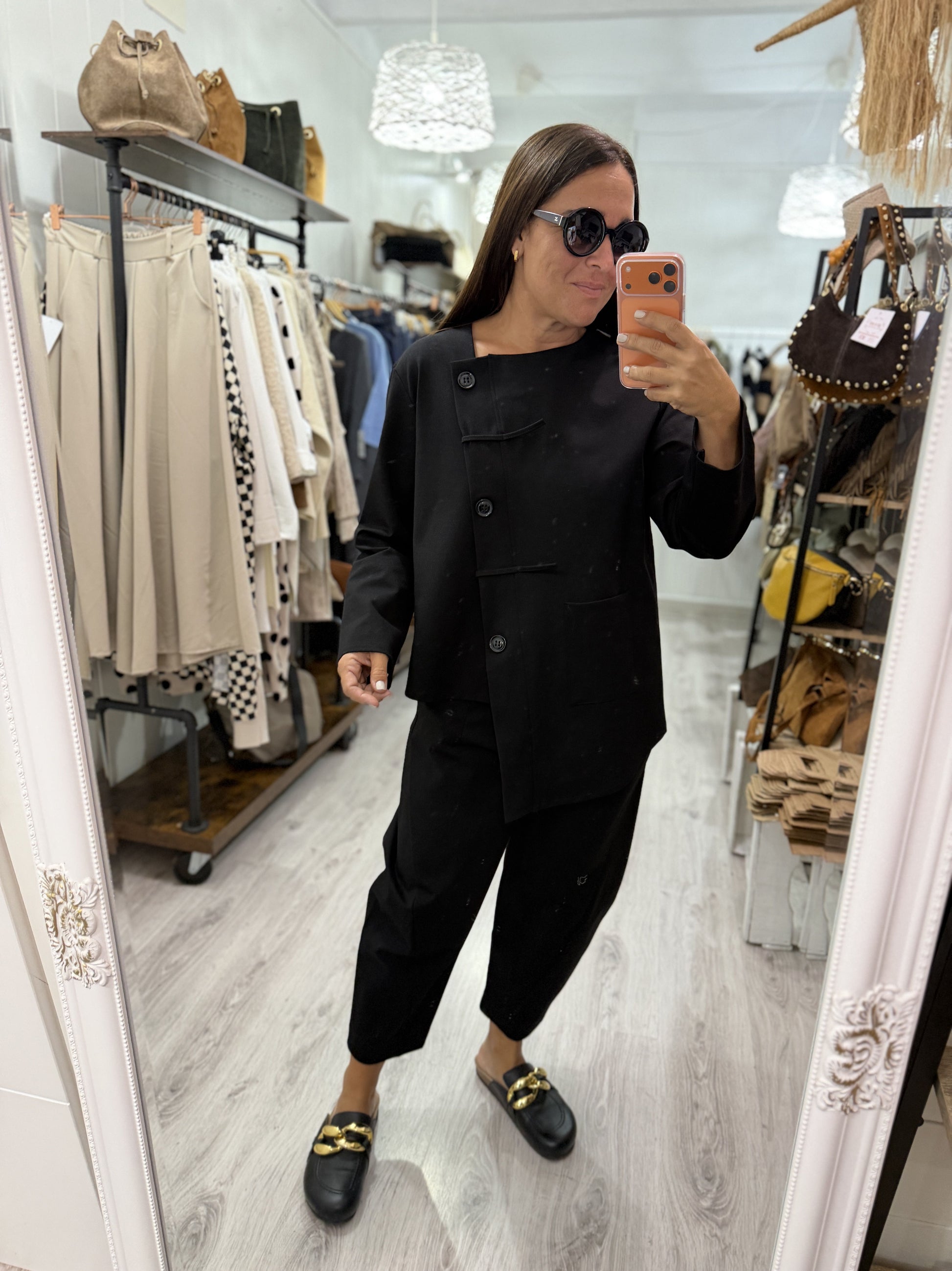Combínala con cualquiera de nuestros pantalones PUNTO ROMA, ya que son el mismo tejido y color, del mismo fabricante.