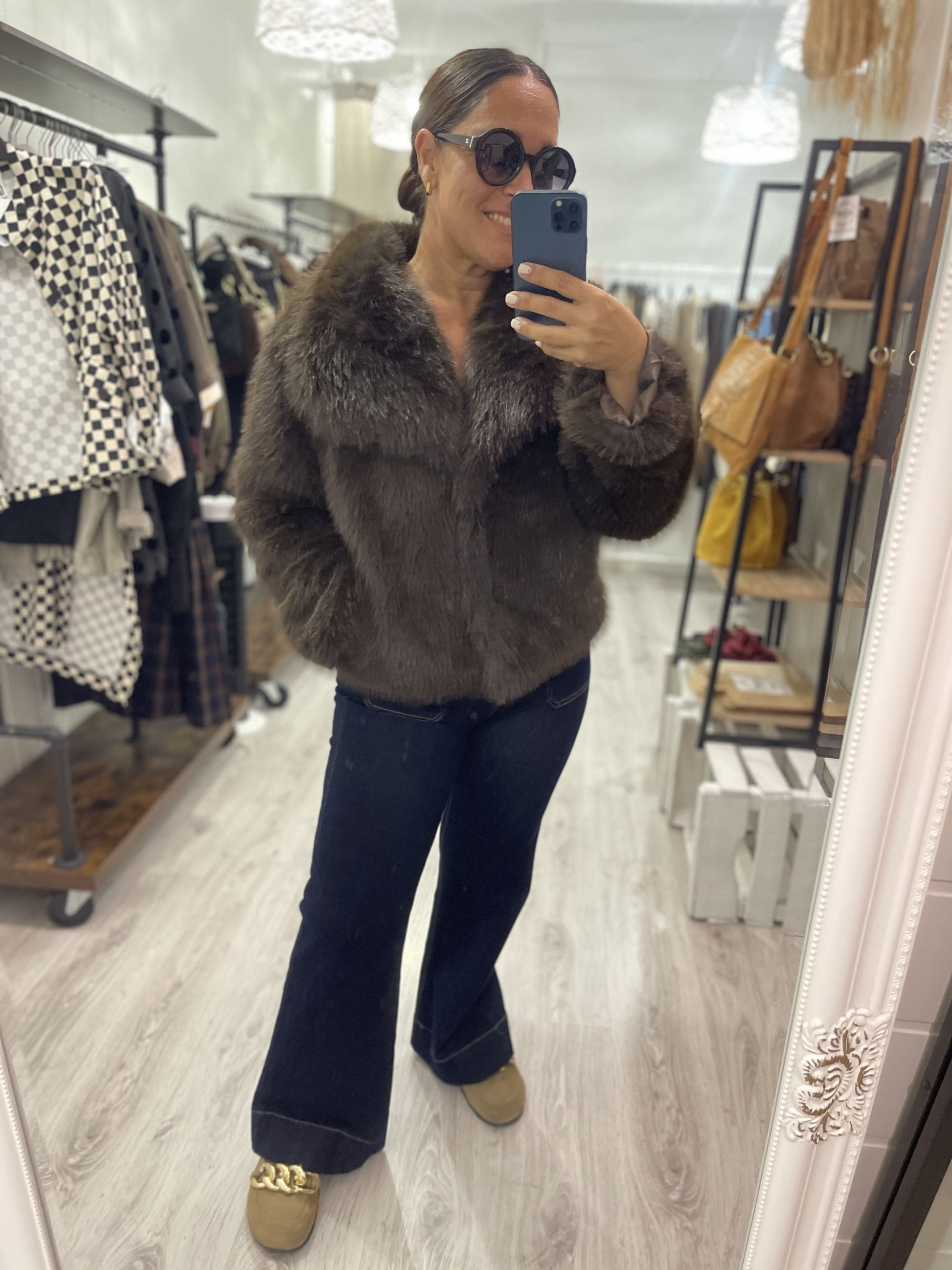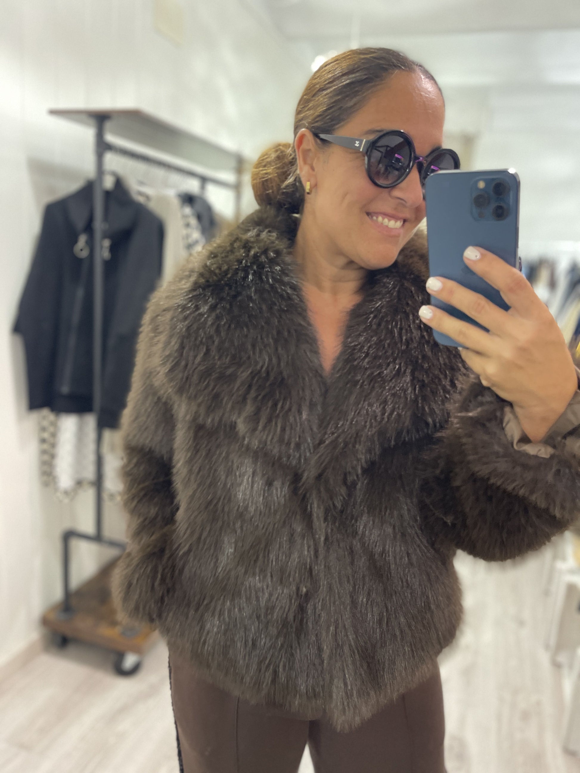 Chaqueta Paola pelo sintético chocolate
