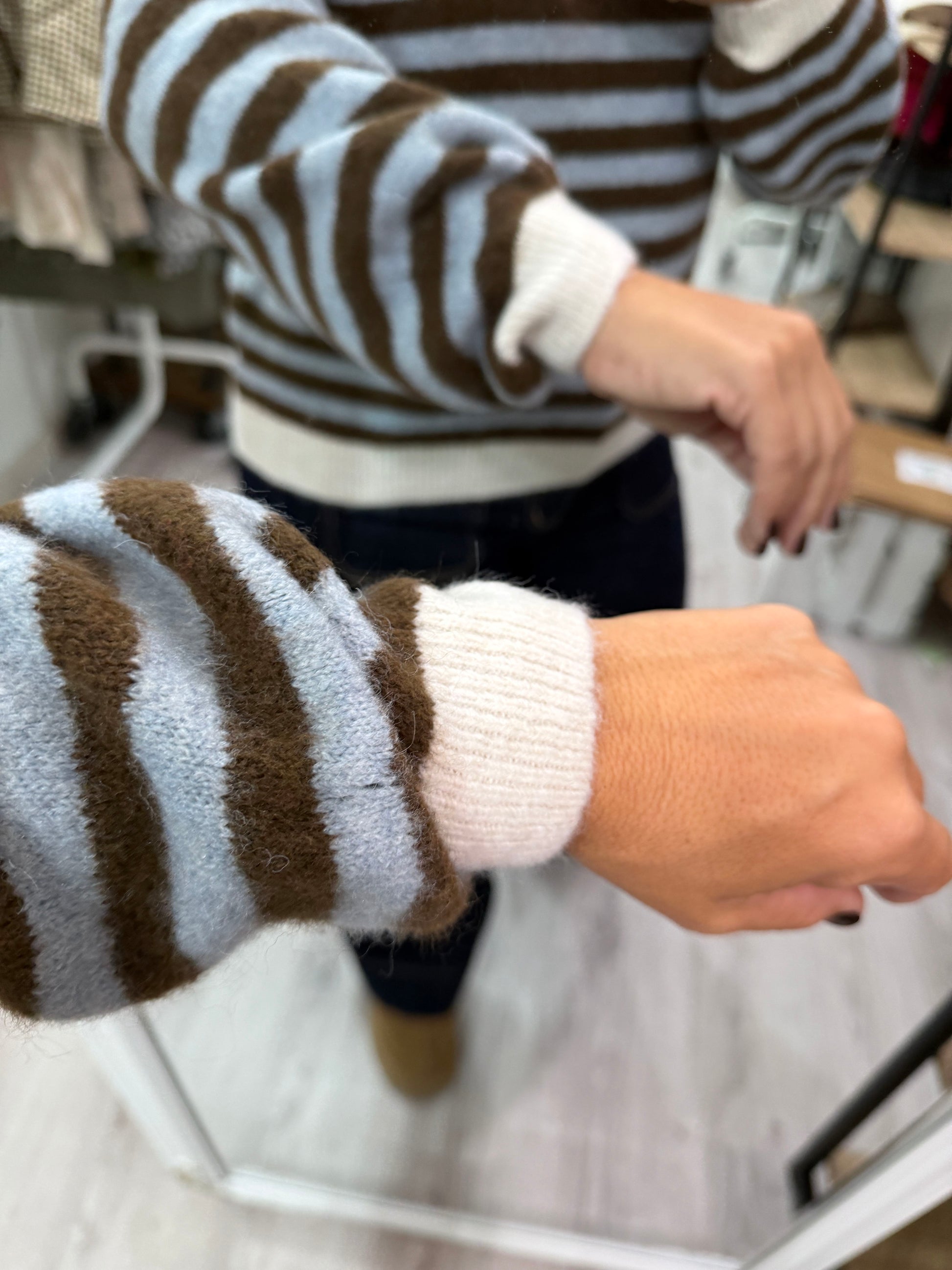 Con cuello redondo, manga larga ligeramente abullonada en el puño, de tacto esponjoso y suave.