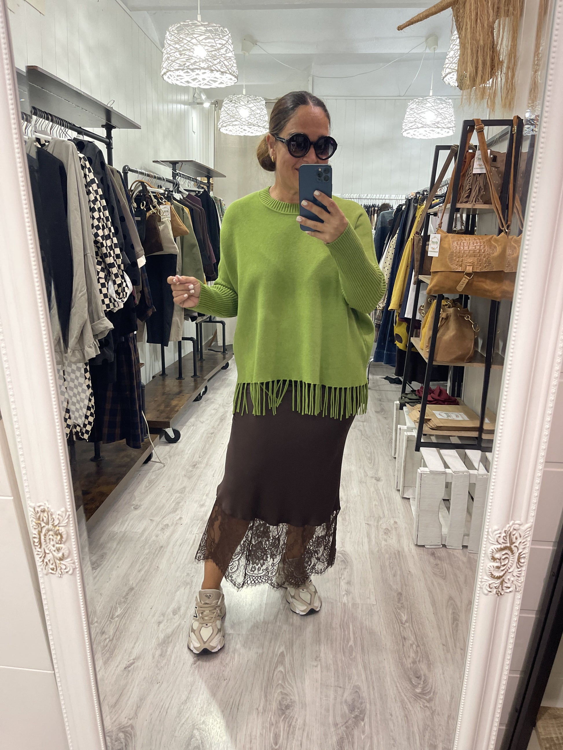 MEDIDAS: 142cm contorno pecho / 150cm contorno cadera / 59cm largo manga / 63cm largo-77cm largo con flecos.