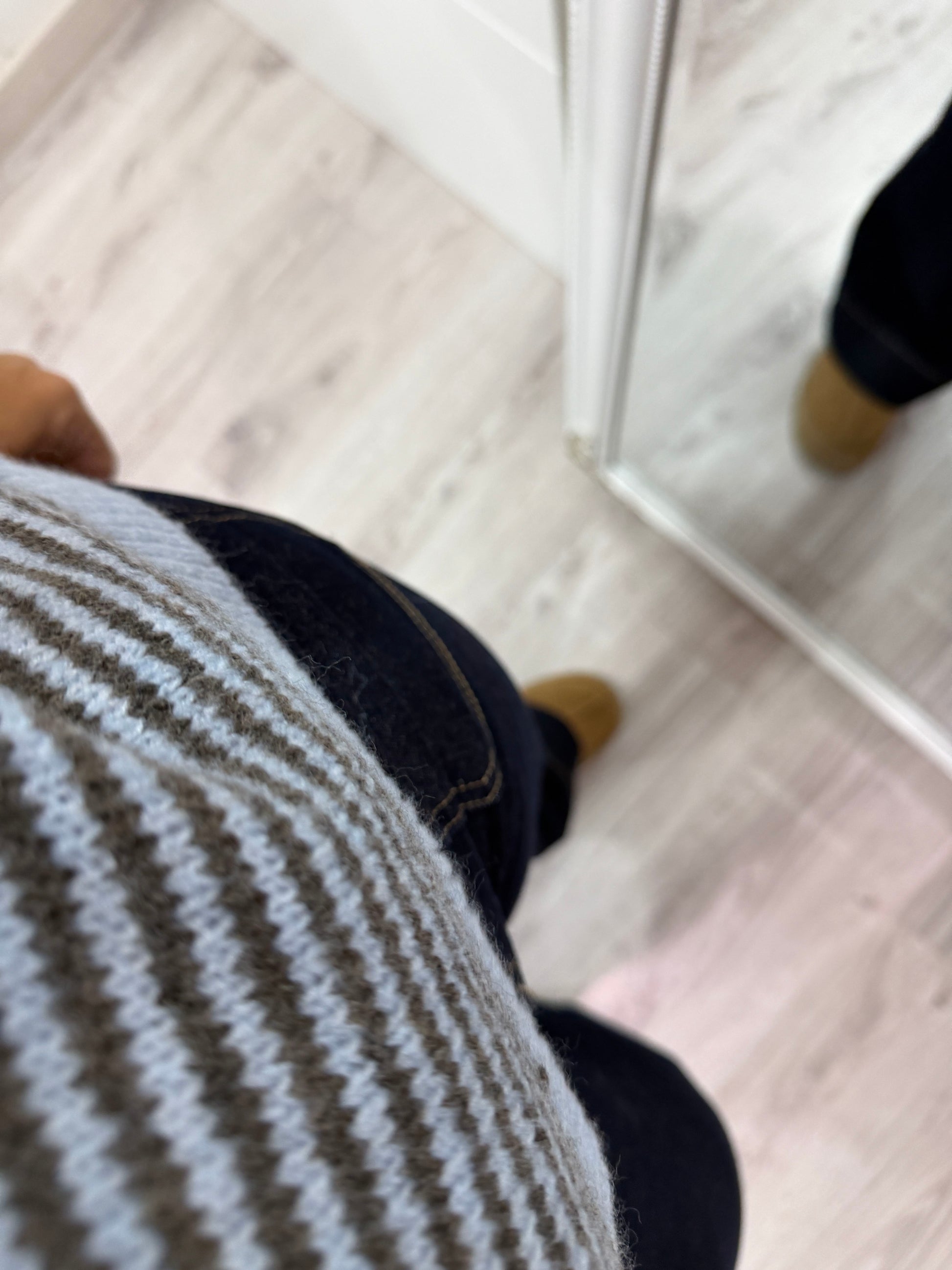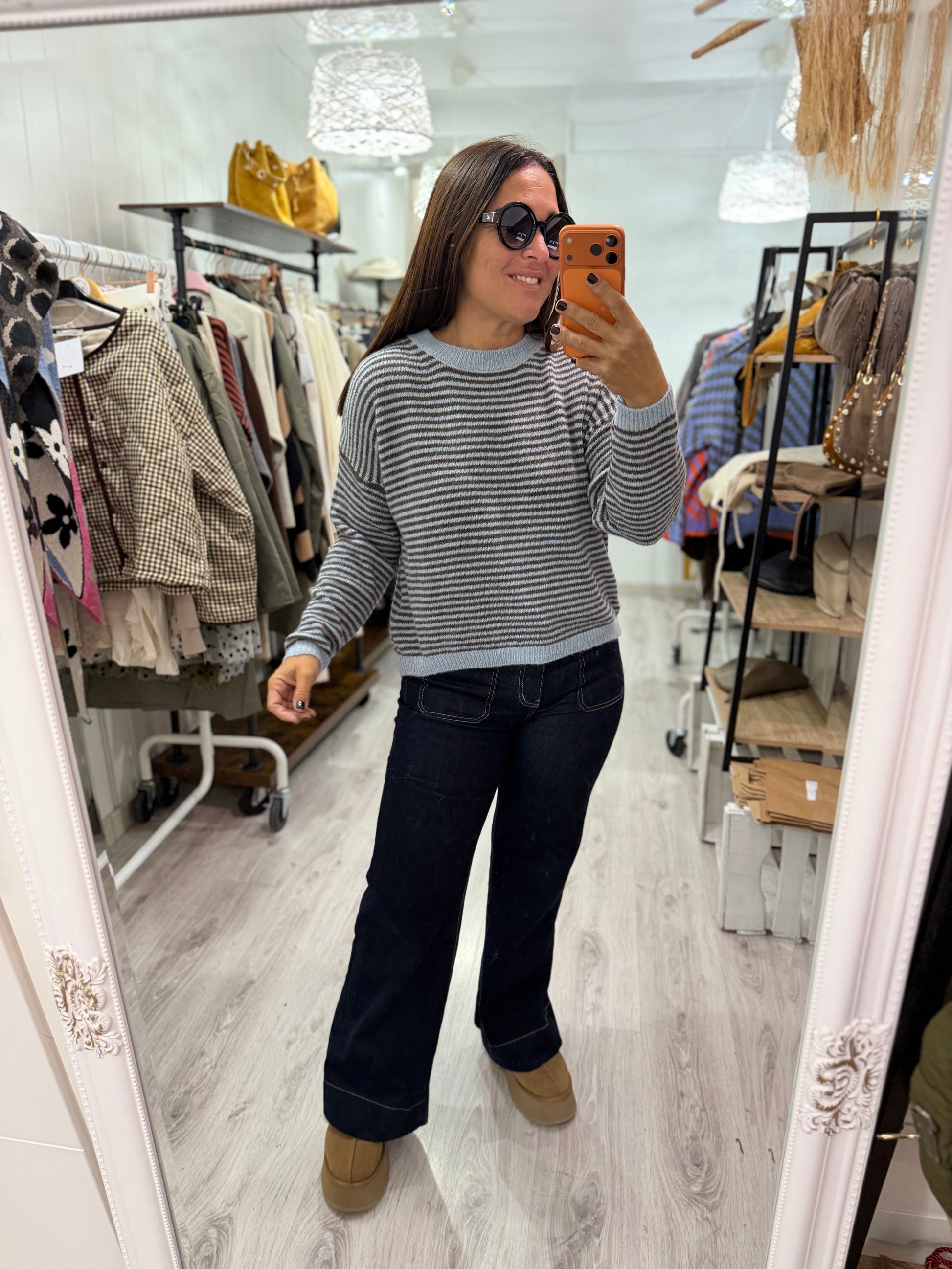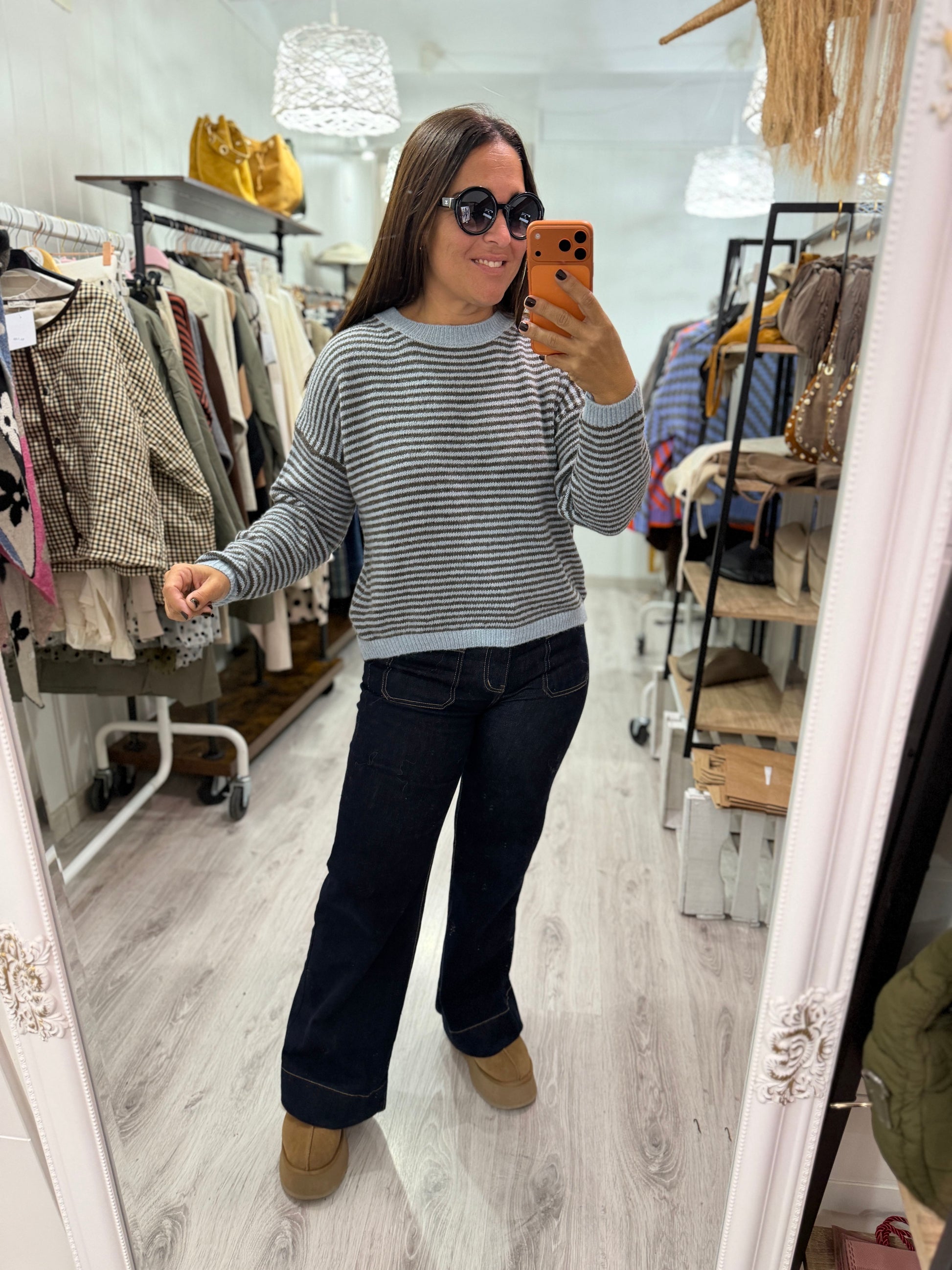 Cuello redondo, manga larga, tacto suave y esponjoso.