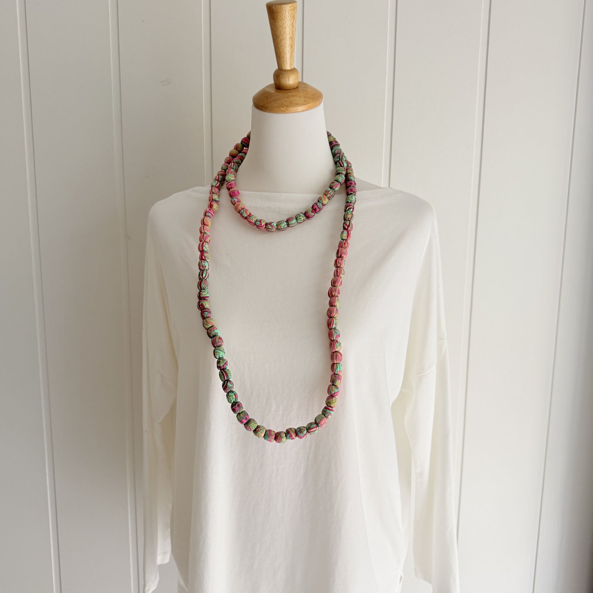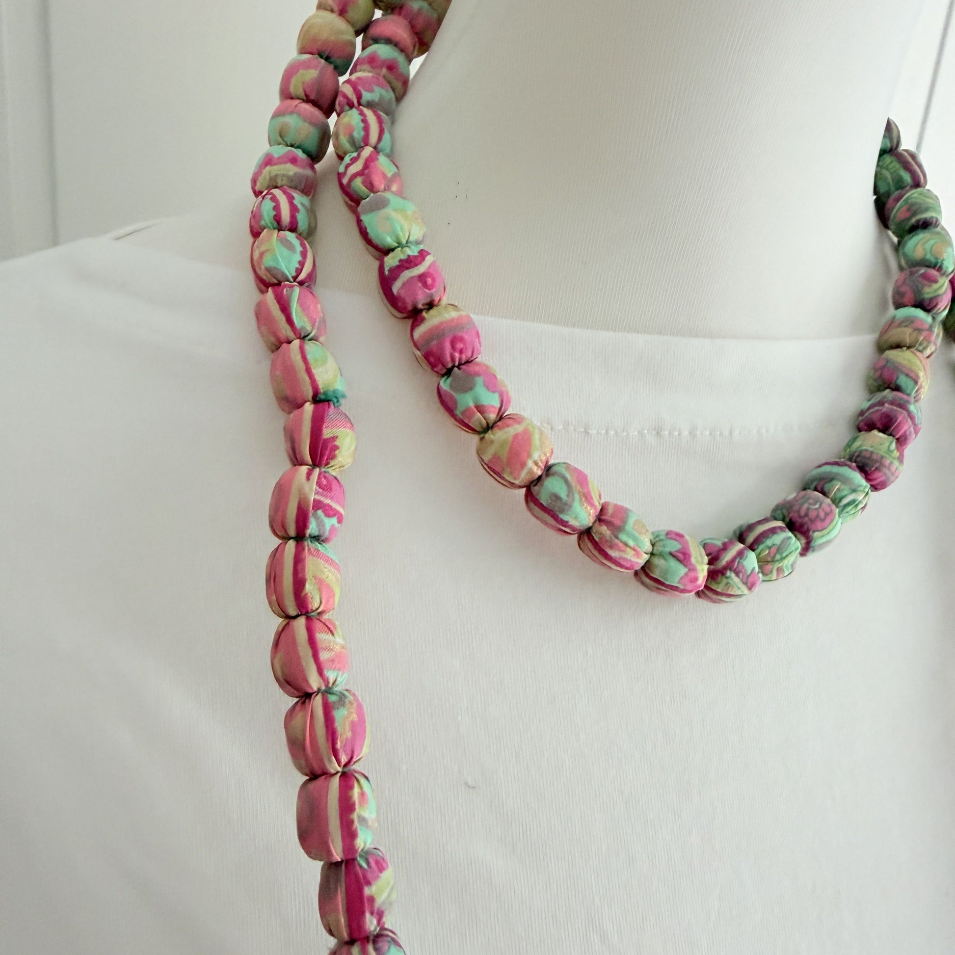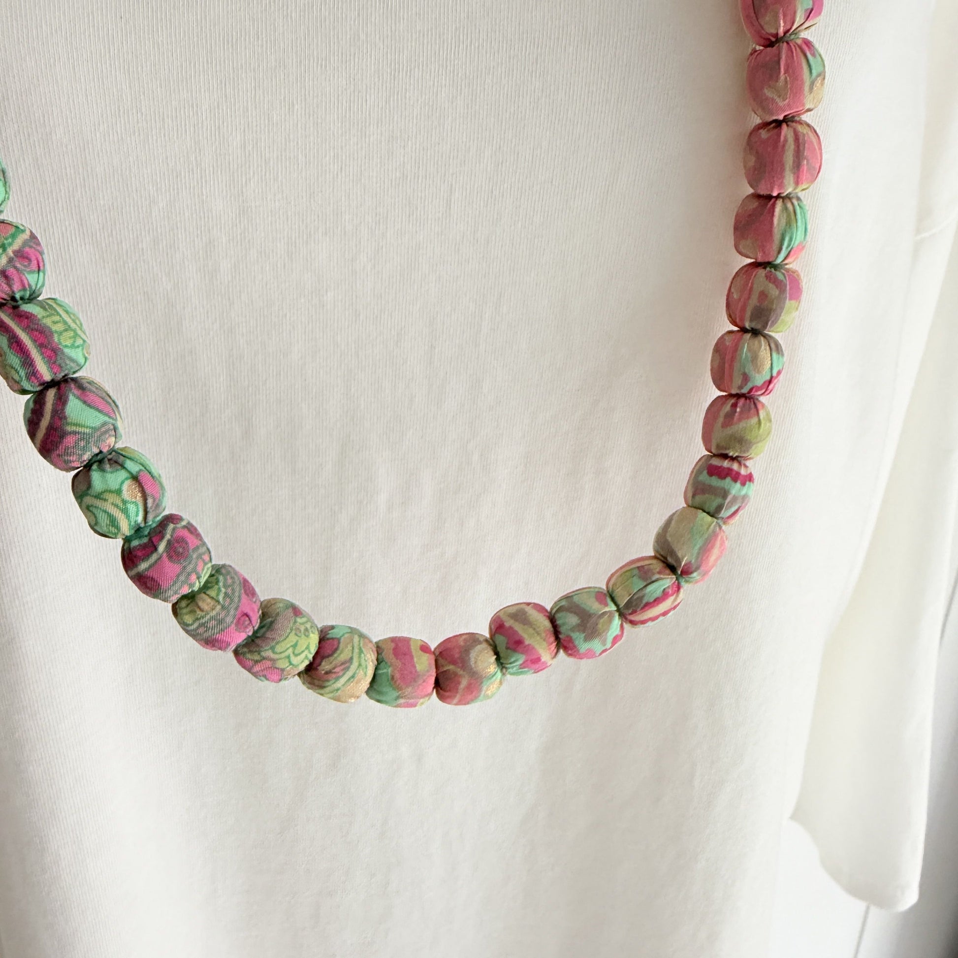 Maxi collar bolas seda estampado rosa y mint