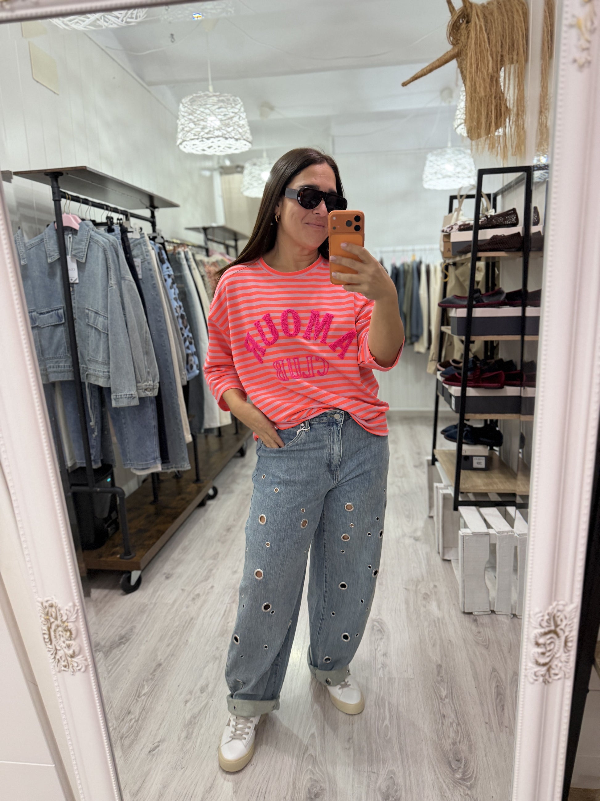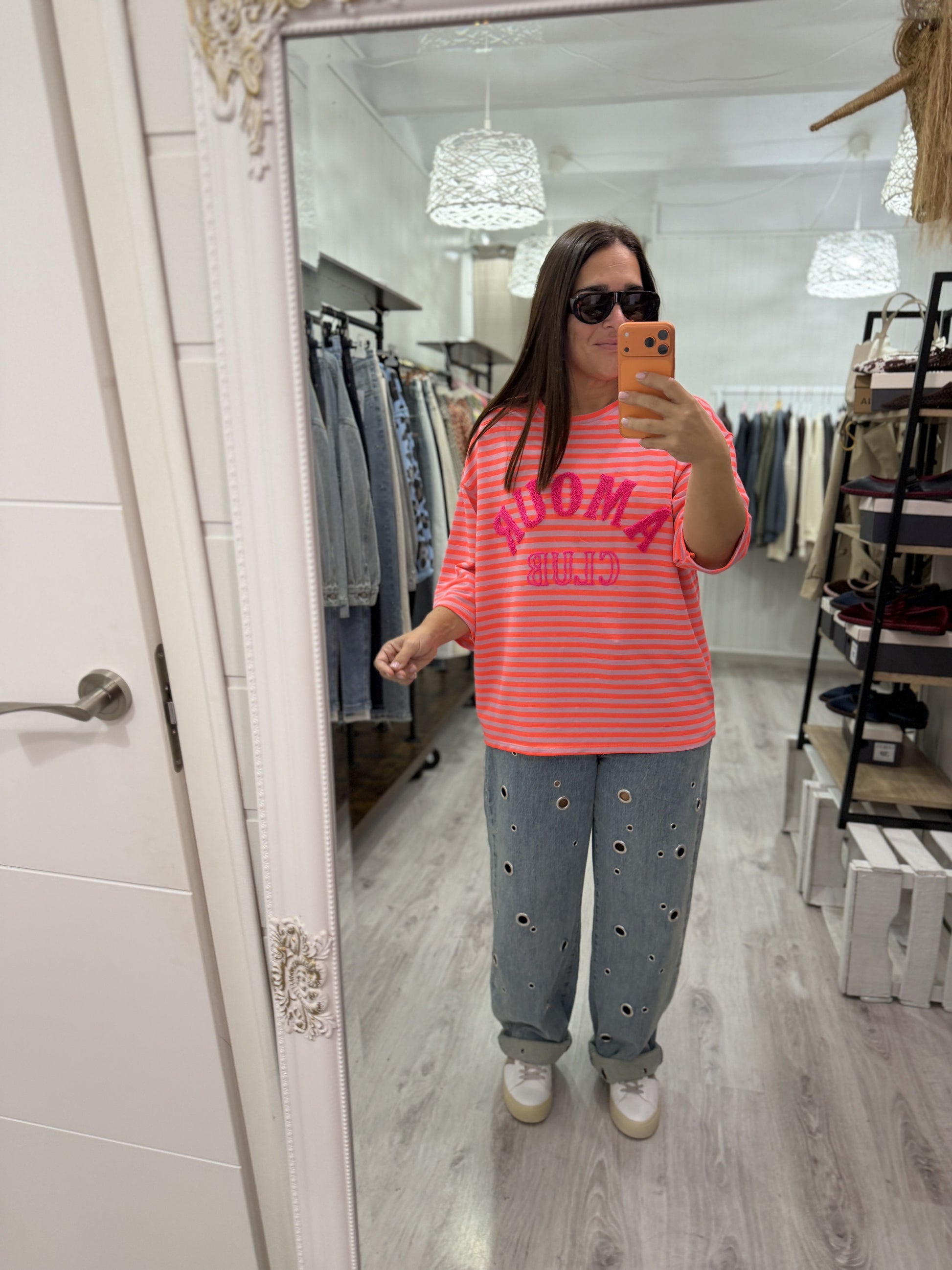 Sudadera Amour Club fluor naranja y fucsia