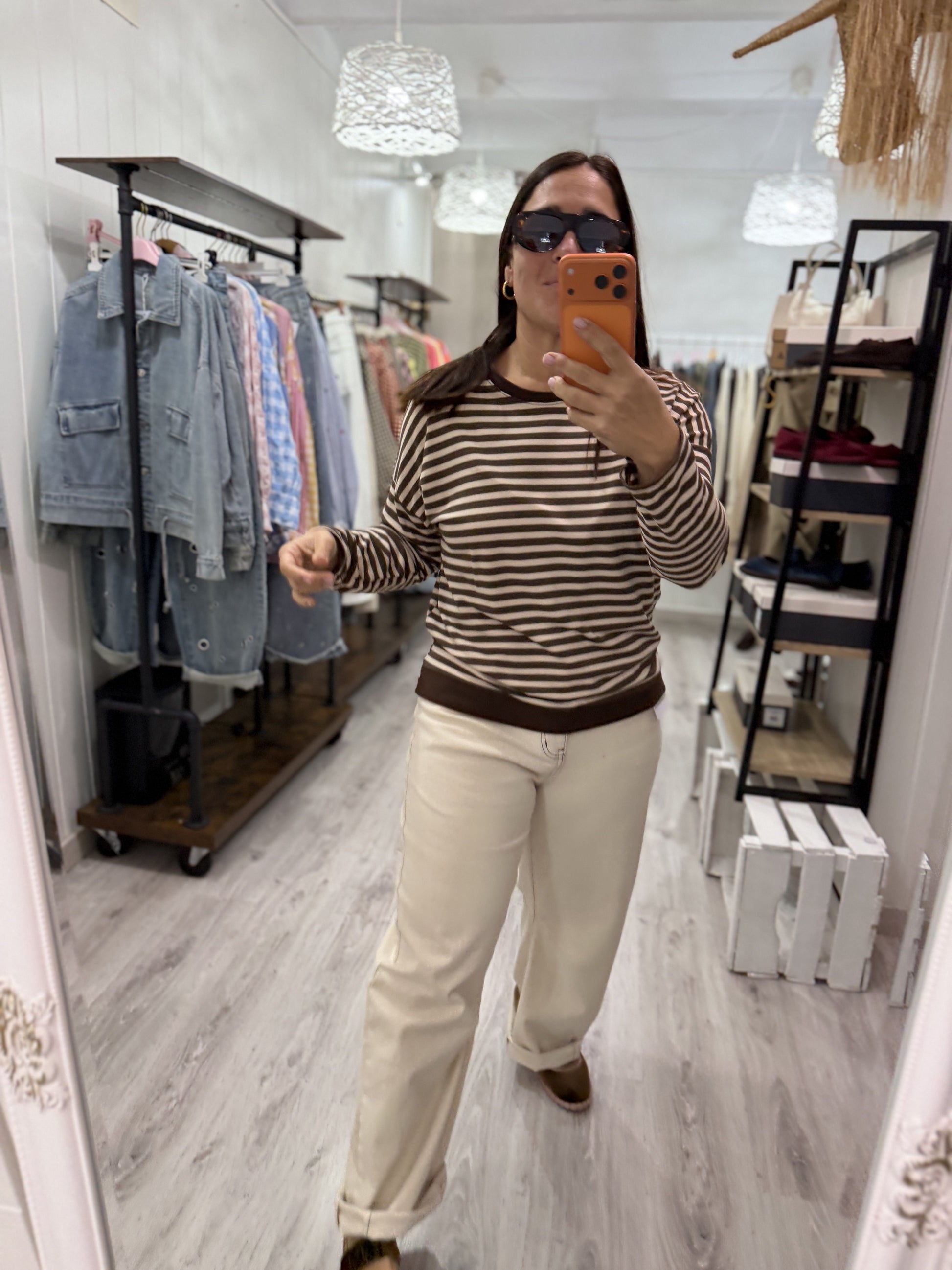 Camiseta Navy Ainara beige y chocolate