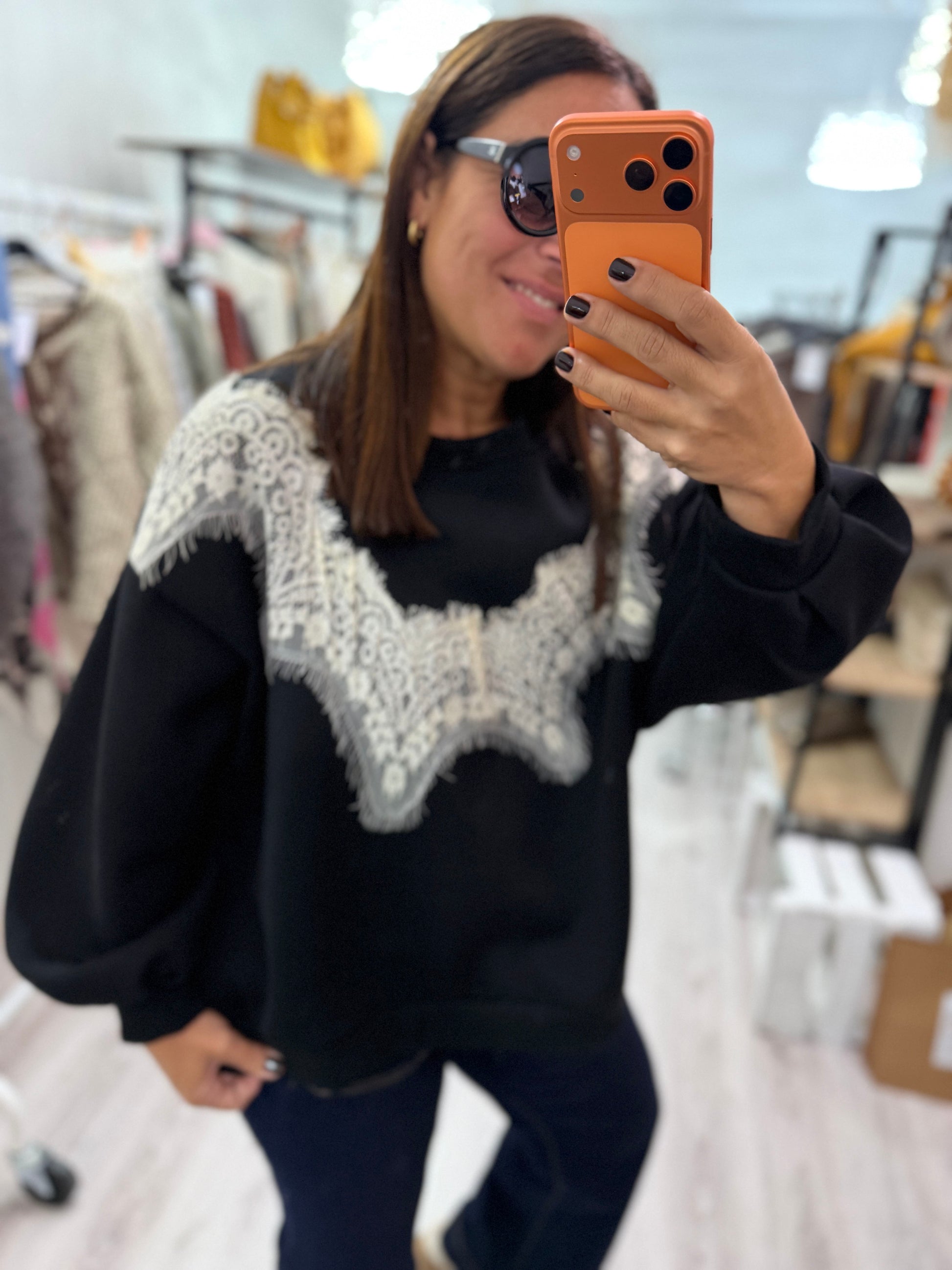 De corte oversize, con detalles de puntilla en el pecho, afelpada, súper calentita.